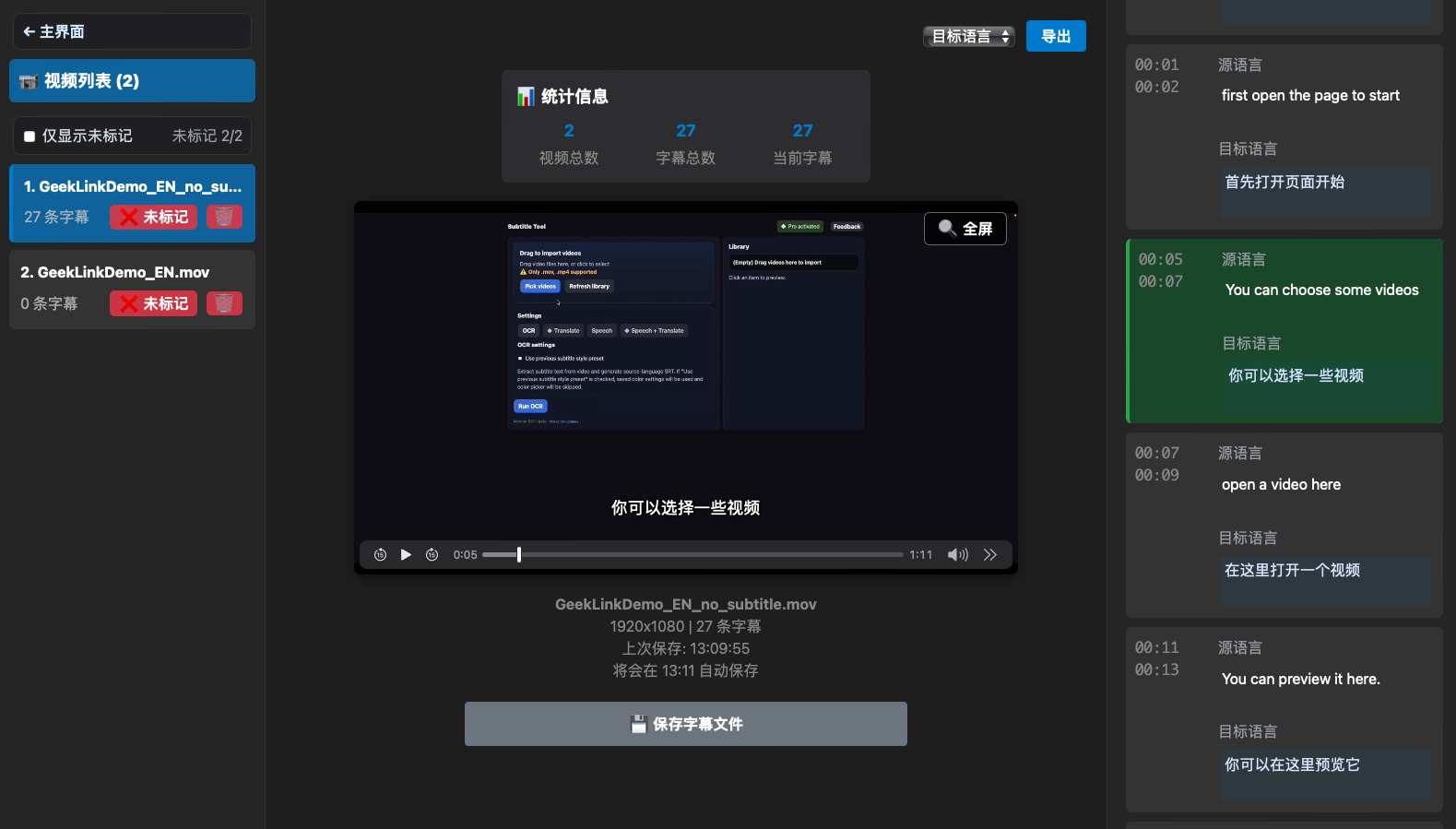 了解如何使用极客连翻译视频字幕、添加字幕和实现视频本地化。